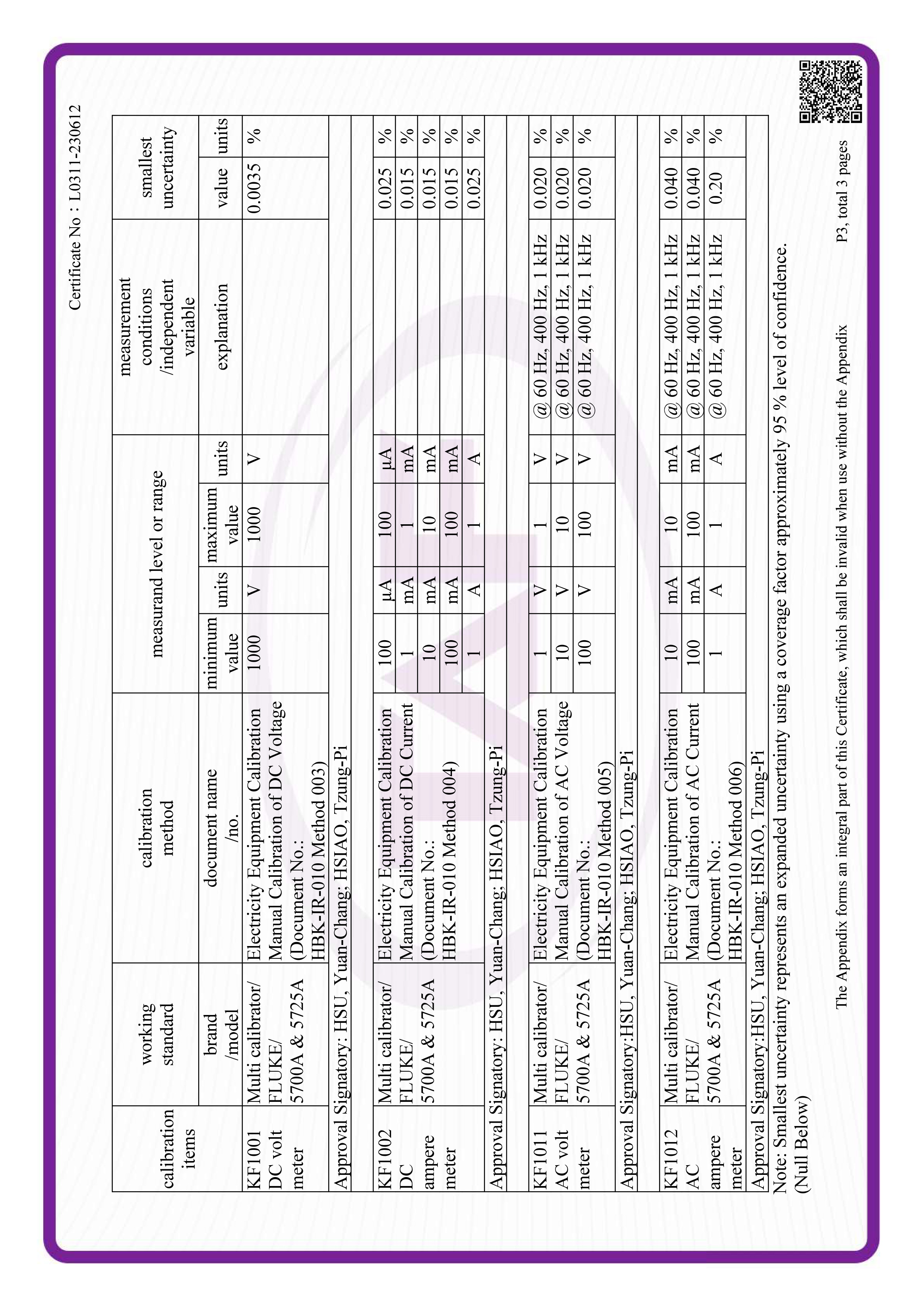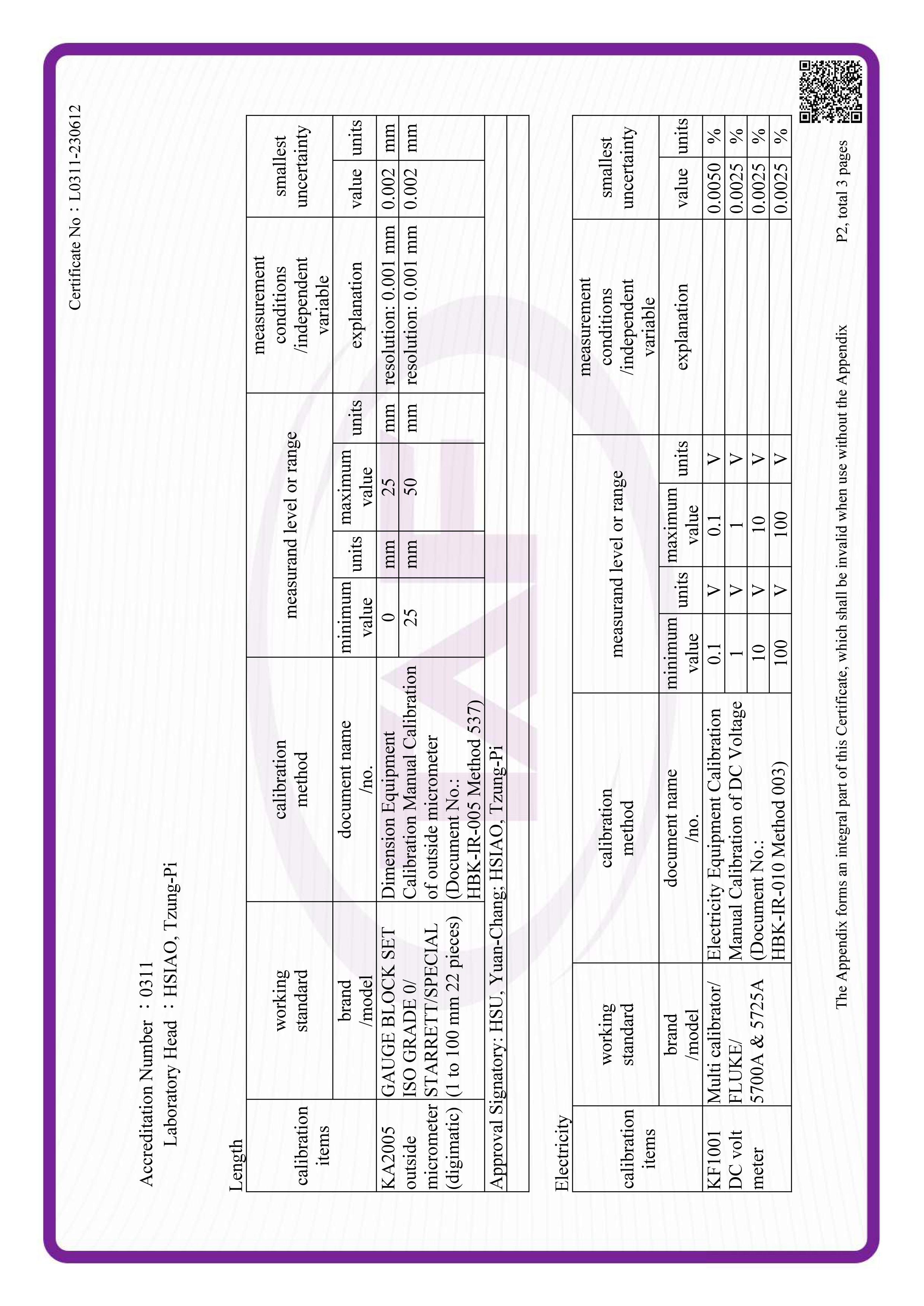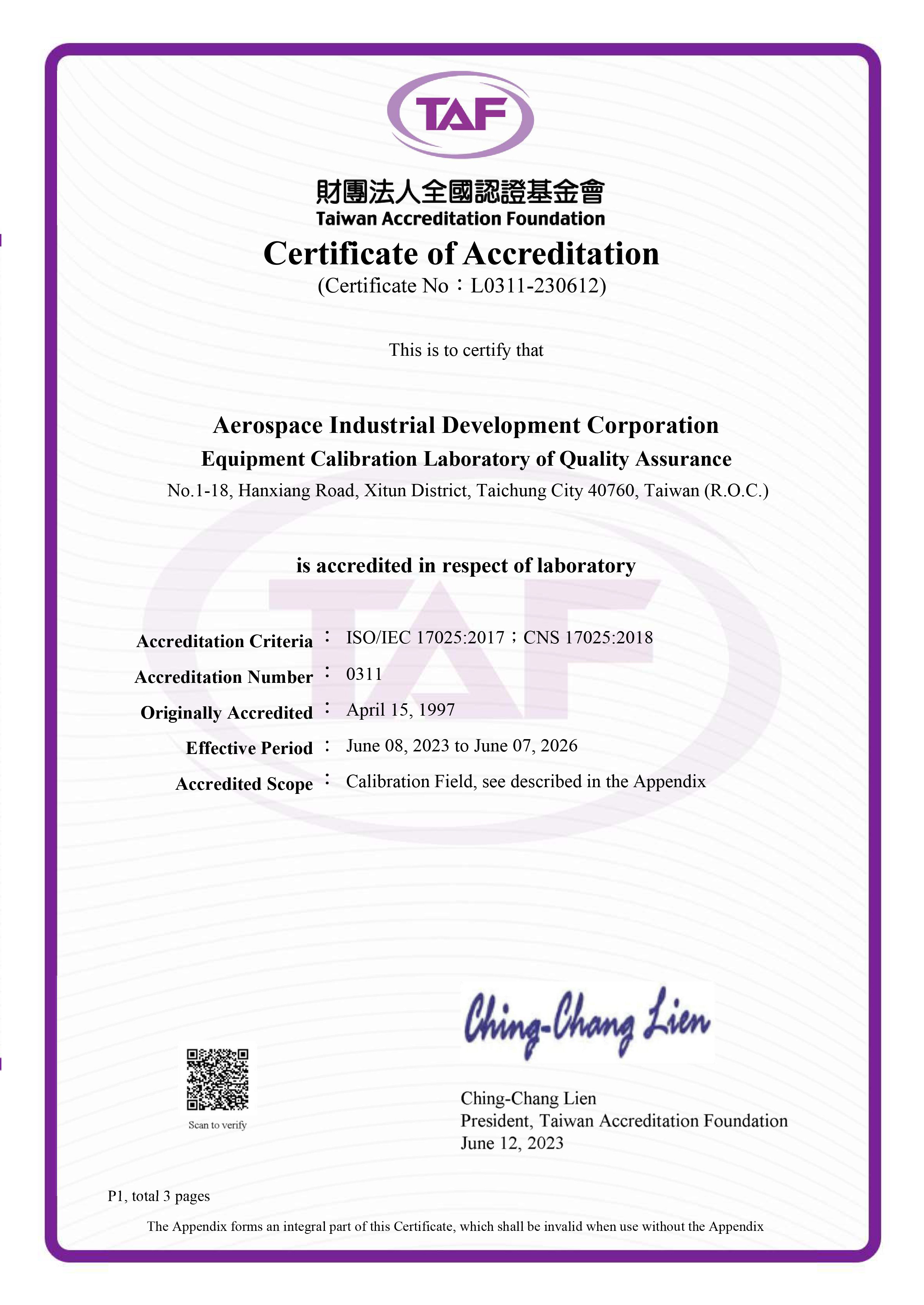 SO/IEC 17025 Quality system is used in calibration laboratory and calibration standard is traceable to national or international standard. Provide the best accuracy and the fastest calibration service with high quality that have been approved by aerospace industrial company in America or Europe. Calibration capability: dimension meter, countersink gage, surface roughness meter, indicator, caliper, cylinder or plug gage, thickness gage, micrometer, level, transit, collimator, height gage, ultrasonic thickness meter, viscosity cup, force gage, weight scale, torque wrench, torque meter, air pressure gage, hydraulic pressure gage, pressure transducer, temperature gage, temperature controller, heat treatment furnace, multi-meters, etc.