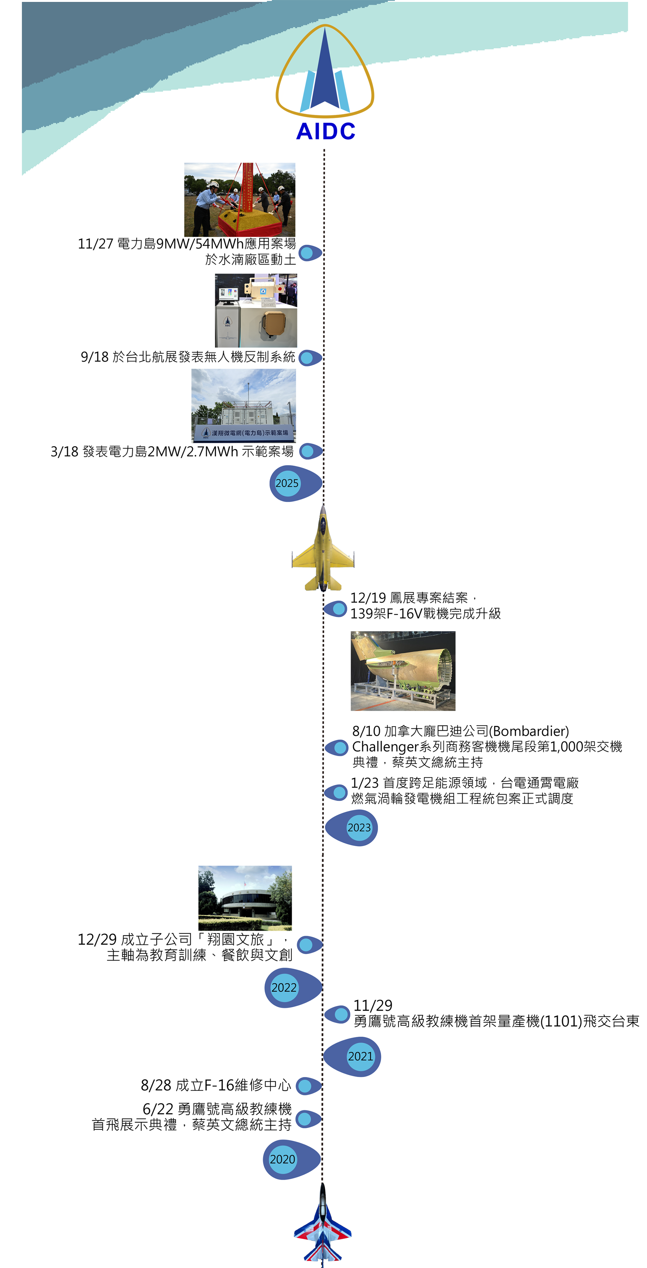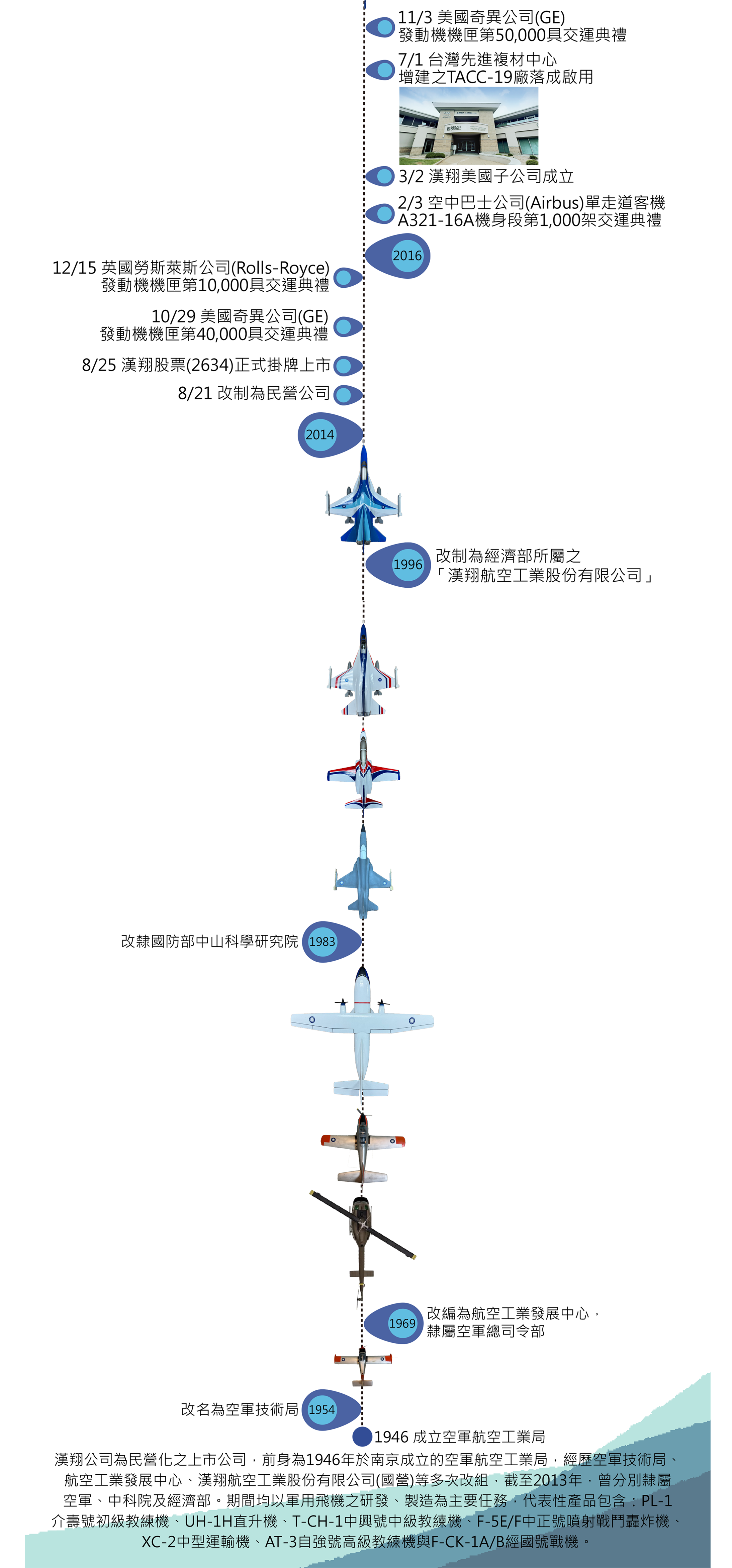 首頁 > 認識漢翔 > 公司沿革 公司沿革 經營團隊 組織圖 業務領域 使命、願景與經營理念 誠信經營政策 地理位置 品質認識 職業安全衛生 環境保護 影音專區 聯絡我們 漢翔FB 榮獲獎項 設備能量 資訊安全 個人資料保護暨隱私權聲明